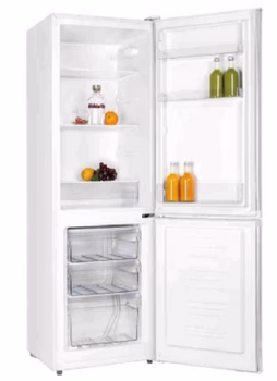 The BCD-248B-E is likely a Richome model number for a 244L capacity static fridge with a bottom freezer. Key specifications include a 183L fridge capacity, 61L freezer capacity, two glass shelves, one crisper drawer, and three freezer drawers. It measures approximately 180cm high x 54.5cm wide x 57cm deep, has an ‘E’ energy efficiency rating, an annual energy consumption of 194 kWh, and a noise level of 40 dB